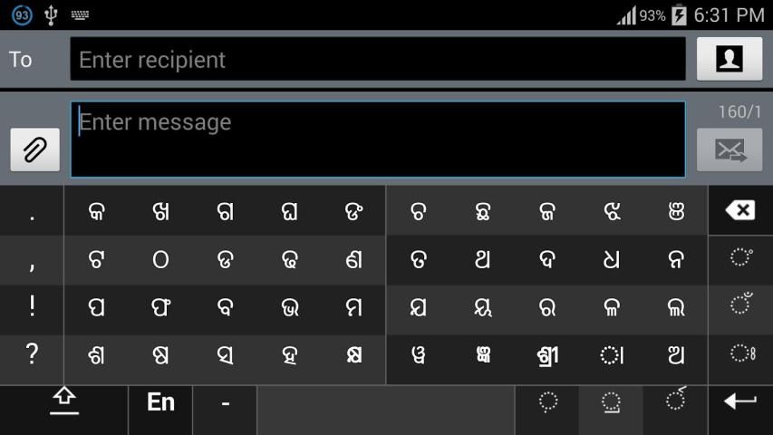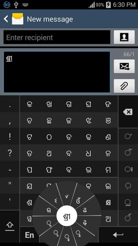 كاملة حروف العلة ( ଅ، ଆ، ଇ، ଈ، ଉ، ଊ، ଏ، ଐ، ଓ، ଔ ) تظهر في شقرا منفصل على أسفل اليمين. حروف العلة وماتراس أقل استخداما هي القادمة إليها ( ଃ، ଂ، ଁ، ୠ، ୃୄ ). تظهر الأرقام والرموز والشخصيات نادرا ما تستخدم على التحول. هل يمكن تبديل أيضا إلى لوحة المفاتيح QWERTY مؤقتا لإدخال الأحرف الإنجليزية.