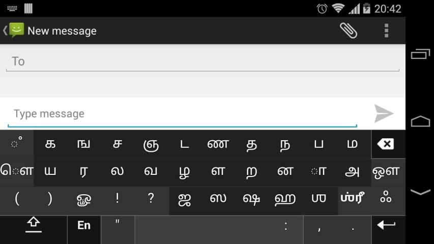 "அகர முதல எழுத்தெல்லாம் ஆதி பகவன் முதற்றே உலகு" إذا كان يمكن للجهاز عرض هذه الجملة باللغة التاميلية تماما، ثم يدعم جهازك يجب التاميل وSwarachakra أيضا تعمل بشكل جيد. إذا كنت لا ترى أي نص، أو إذا كان بعض الكلمات غير صحيحة، Swarachakra قد لا تعمل بشكل جيد.