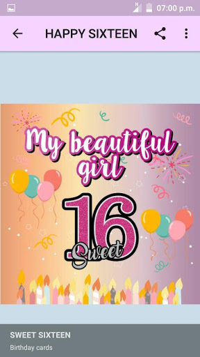 Sweet Sixteen is an application designed with several beautiful phrases and beautiful birthday pictures decorated with flowers, confetti, balloons, pancakes, colored ribbons, etc. and it allows celebrating the most beautiful moment of the life of a teenager through a dreamed and fun party to celebrate her magical and unforgettable sixteen birthday