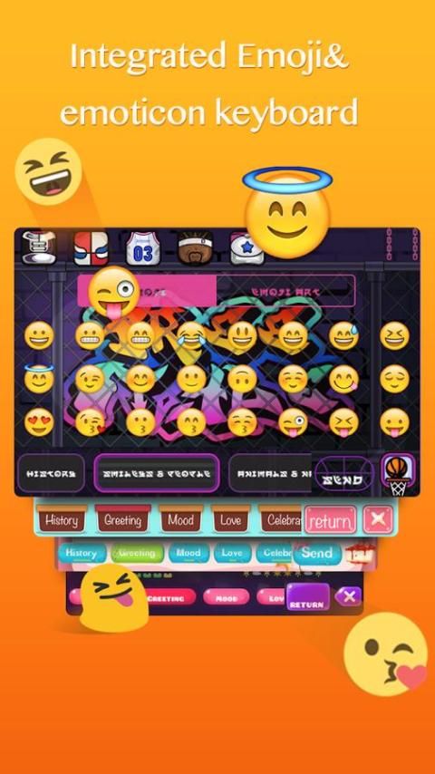- الإدخال 3200+ رموز تعبيرية وتعبيري عن الفن والتعبيرات في أي مكان ملائم مثل رسالة، والنص، والبريد الإلكتروني، علما، والاتصال، والرسائل القصيرة، الفيسبوك، رسول، سناب شات و Instagram و KIK وأكثر من ذلك.