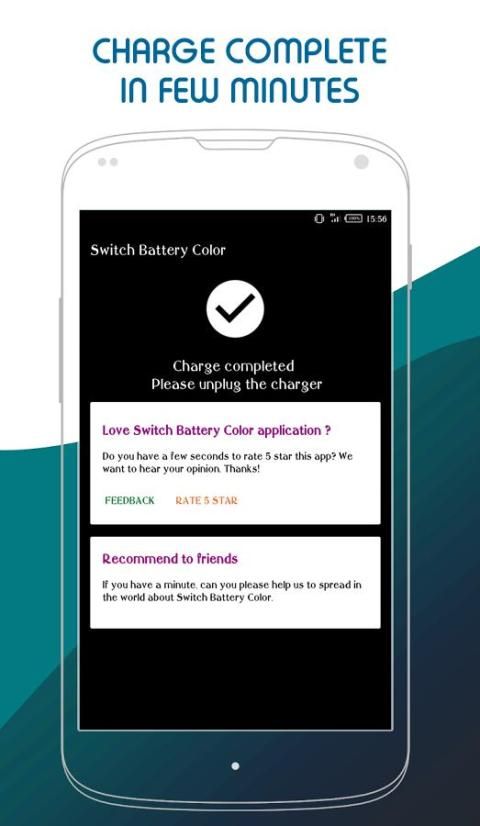 تبديل البطارية اللون يصل إلى 30٪ أسرع من غيرها من التطبيقات شاحن سريع.