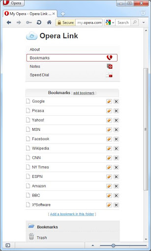 If you have any questions or issues, please send me an email and I39;ll do my best to help. I can not respond to reviewsSynchronise your Android bookmarks with Opera Link. Use it for accessing those onthego bookmarks on other devices, or simply for backup purposes.How to use: go to Settings Accounts and sync click Add Account and select Opera Link Sync to set up synchronisation.Note: Honeycomb adds support for bookmark folders. Unfortunately, this information is not available to other applications. For this reason, bookmarks in subfolders may be added to Opera Link, but subfolders in Opera Link will not be synchronised to the Android browser XSoftware is not affiliated with Opera Software. Opera Link is copyright Opera Software ASA.