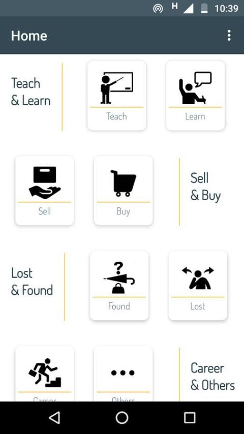 ويجري تطوير هذه الخدمة للبحث عن فرص متنكرا في زي المشاكل. هدفنا الرئيسي هو ربط الطلاب الذين يمكن أن توفر الخدمات أو السلع إلى أولئك الذين هم في حاجة إليها، من خلال مختلف الخدمات التي نقدمها مثل تعليم و تعلم وبيع وشراء. وبالإضافة إلى ذلك، الخدمات مثل المفقودات، الإرشاد الوظيفي وخبرات جامعة بك وتتوفر أيضا. كما يوفر منصة للتفاعل الند للند وكسب يستحق المهارات الخاصة بك. وهي المرحلة التي يمكن للمرء أن عرض واحد المواهب المخفية. يرصد واحد الى واحد تفاعل ممكن. تم تصميم هذه الخدمة لكسر كل تلك تقيد التي تواجه الطلاب في تنميتها الشاملة وتحقيق أحلامهم.