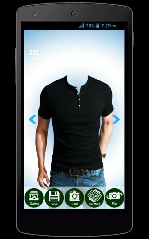 The T-Shirt Photo Suit For Men application will give a stylish T-Shirts for boys. You can wear virtual T-Shirts, just take photographs with the camera. You have front and back camera to take a picture. If you want to take a picture with front or back cam, click on the flip button in the below right side of corner in the menu. You can edit your photo (Scale, Move and Rotate) for suitable T Shirt. Already have a pic in your mobile, it can choose from a gallery and edit the pic depends on a T Shirt. Save the picture after editing. Set as wallpaper on the mobile screen. You can try wide variety T Shirts with the next button and enjoy.