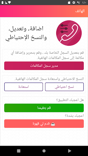 وايضاً يحتوي على خاصية مميزة لأخذ نسخه احتياطية من سجل المكالمات واسترجاعها عند فقدانها لأي سبب كان.