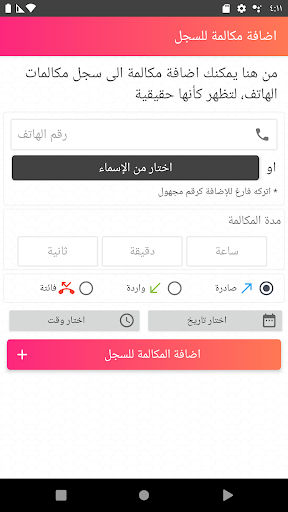 أيضًا ، يمكنك إضافة أي مكالمة إلى السجل بوقت وتاريخ وأثناء ونوع محدد.