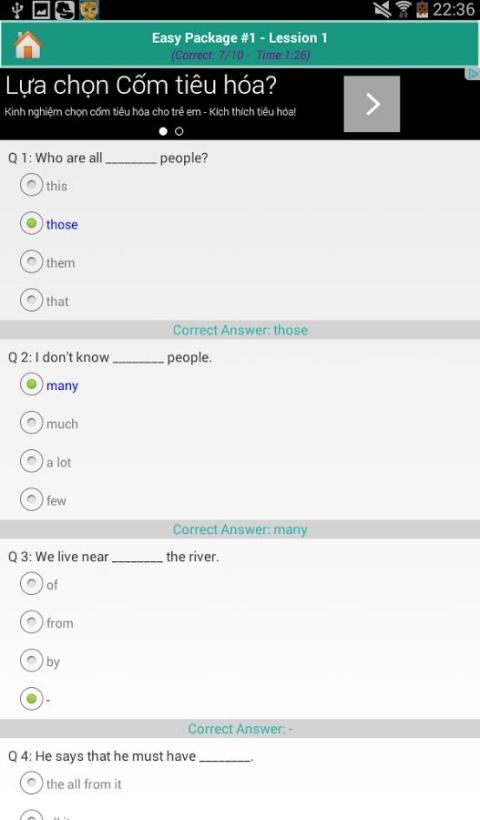 هذا التركيز التطبيق في بنية أساس الاختبار، كل اختبار له عشرة أسئلة، كل سؤال له أربع إجابات للاختيار. في نهاية الاختبار سيقيم درجاتك التي تحققت، ثم يمكنك أن تتعلم من التجربة وتحسين قدراتهم من خلال كل هذا الدرس