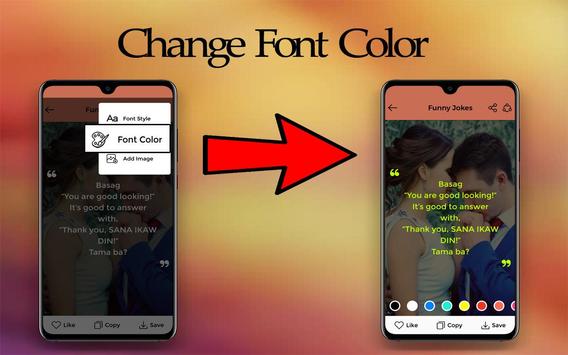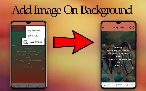 Tagalog Jokes : Funny Jokes, Bisaya & Pinoy 2019  Is Completely Offline and FREE app with latest collection of best Tagalog Love Jokes, Status, Funny Jokes for setting as your Jokes. You can Also Change Background Of Photo & Edit Your Background Photo.