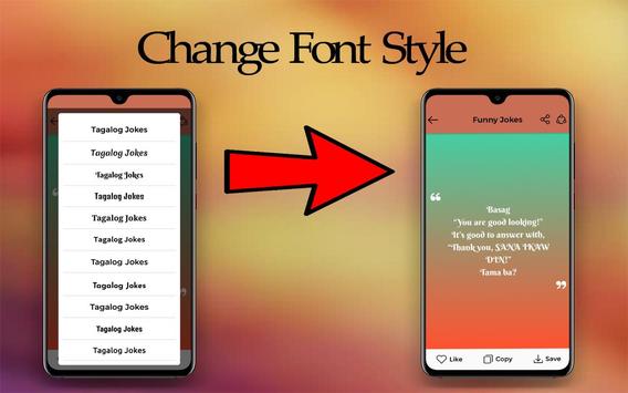 Here you can customize 1000 philippine Jokes. You can share unique Jokes with your friends on social media like facebook, whatsapp, instagram. Top collection of tagalog Jokes, banat, patama, love stories, funny jokes, hugot Jokes to inspires you. This app enhance readers to share their thoughts, pamatay na banat, patama and tagalog Jokes.