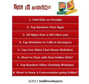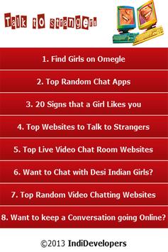 Talk to strangers is perfect app for users which are searching for random chat with strangers online, Basically we are providing genuine talk to strangers websites online to help users to easily find online video chat with strangers without any harmful effect. If you want free video chat you can visit our app to find best websites for live video chat.