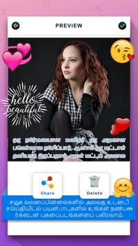 Our Tamil Text on pictures feature allows you to write text on photo with animations. Import photo from camera or gallery and add text with animation, cool fonts, color and music to make your memorable photo unforgettable. Write on photo and apply effects to share your all friends.