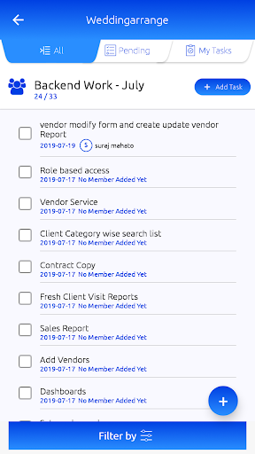 TaskCloset هي التفضيل الأول للعديد من المنظمات بسايتها. يمكنك بسهولة التخطيط لمشروعك، وقسم العمل الكامل في مجموعات المهام، ومجموعة المهام في المهام، وتعيينها، واتخاذ تحديث العمل من الآخرين، وتحميل الملفات، وإعطاء التعليقات والرد بطريقة سهلة الاستخدام للغاية.