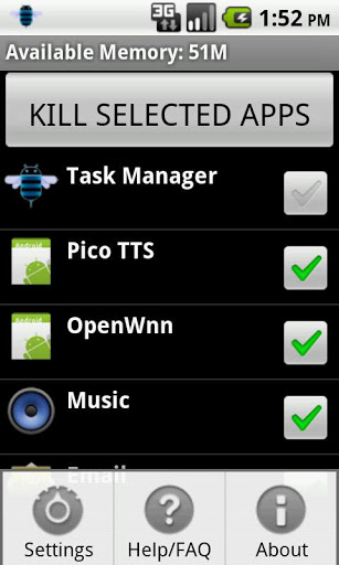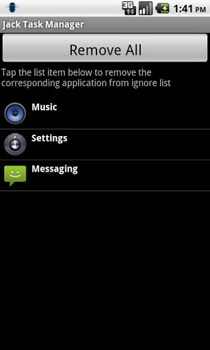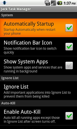 A tool to save battery,kill task,free memory,speed up phone.Features:Simple,quick,easy to useIgnore list to exclude app Auto kill apps after screen offoneclick kill widgetignore alarm clockDescriptionTask Manager which in short is ATMGR or ATM is a taskkiller or appkiller to kill tasks or apps. It can list all the running tasks or apps, and you can select task or app to kill, and click the kill selected task button to kill them. It is also a task manager tool to manage all the running apps, you can long click on the task or app that you want to kill, and you will get a poped up context menu with more options. You may found that some apps restarted after killing, because of some tasks or apps are restarted by system events automatically, and we suggest that you enable the auto kill in setting. Then it will kill tasks or apps on every screen off, and the apps will not restarted until the phone was unlocked. It will help to save battery and extend the battery life.There are many task kill tools in the market, the most popular one is Advanced Task Killer which is short for ATK, and our task killer is different from them. Basically our app killer list more apps then ATK, because we use the same way to get system running task list as the android system panel, so our task list result are the more accurate then ATK. Another important difference is that we have an uninstaller feature in our task killer, and you can uninstall useless apps from your phone. Many of the task kill apps have one click widget, but the widget of our task killer can show available memory. Its not default enabled, users can enable it in setting. Overall our app killer is the best one of so many task or app kill tools in the market.Android gt; 2 2 system changed the task manager machenism, and task killer cannot kill services and notifications when kill apps. If you want to kill tasks thoroughly, long click on the task that you want to kill, and click force stop, you will see the application info system panel, then click the force stop button. for Android system gt;2.2, click menugt;service, you will see the running service system panel, and you can stop running services here.Any problem, its better to send feedback to us to get help then 1 starFAQQ: Why do apps restart again after killing?A: Some apps are restarted by system events and apptask killer apps cannot prevent them from restarting because of the limitation of the system. It is suggested to enable auto kill in setting, and it will kill tasks or apps on every screen off, the killed tasks will not be restarted until the screen was unlocked again. It will help to save battery life and release memory for the phone.Q: How can I add app to ignore list?A: You can long click on the task that you want to ignore, then you will get a poped up context menu, click Ignore. The ignored apps will not be listed in the task list, and will never be killed by task killer. You can manage the ignored apps in setting.Q: Is task killer meaningful for android?A: Android 2.2 improved the task manager machenism and it is said that the task killer or app killer is meaningless for android. In my view its partly true, in android 2.2, task killer or app killer tools is not powerful as it was in android 1.52.1, but it still can help to release memory and extend battery life by enabling auto kill. Our app is not only a task killer, it also can help to manage the running tasks and installed apps.Q: How can I manage startup apps by app killer?Our app killer has Startup Kill, it can help you to kill apps on system startup.KWtask killer,taskiller,appkiller,taskkiller,task kill,task manager,task panel,taskpanel,app killer,app killer,app kill,app uninstaller,app remover,save battery,battery saver,free memory,free up memory,free up ram,ATK,ATM,ATMGR,startup kill,app closer,qq