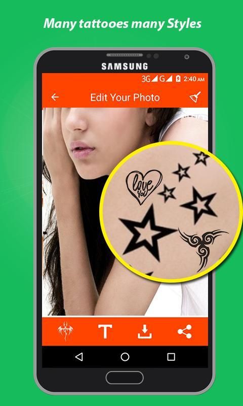 نقدم افضل تطبيقات اندرويد مجانية هنا 20,000+ مستحدمين يحملون Tattoo Camera احدث الاصدار مجانا كل أسبوع في حين تقوم بالنقر ،يبدأ التطبيق يحمل وتنتظر قليلا حتي انتهاء التثبيت فيمكنك تستخدم..9Apps هذه التطبيق الحلوووه تصدر في 2017-10-25 ستجد التطبيقات الرائجة والمتشبهة المزيدة هنا..