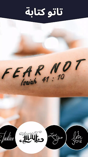 اختبر أفكار الوشم الخاصة بك دون ألم - اكتشف لماذا يعد هذا أحد أشهر تطبيقات تصميم الوشم! إنها أسهل طريقة لإضافة نص إلى الوشم بنقرتين بسيطتين!
