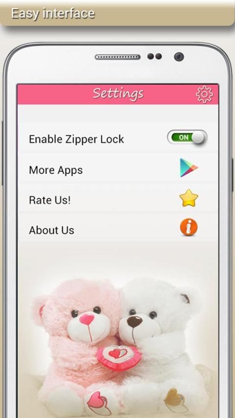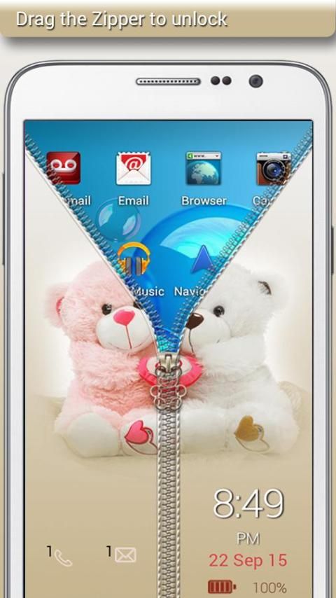 The Teddy Bear is a soft toy in the form of a bear. Teddy bears are among the most popular gifts for children and are often given to adults to signify love, congratulations, or sympathy. Now we are presenting beautiful new stylish Teddy Bear Zipper Screen Lock for them. It is a free zip locker app for Smartphone screen. Easy and simple locker made for people who aren't really concerned with screen lock security or passwords. If you are a Teddy Bear lover then you surely want to decorate your home screen with Teddy Bear Zipper Screen Lock app. Kids, girls and guys will really like it.