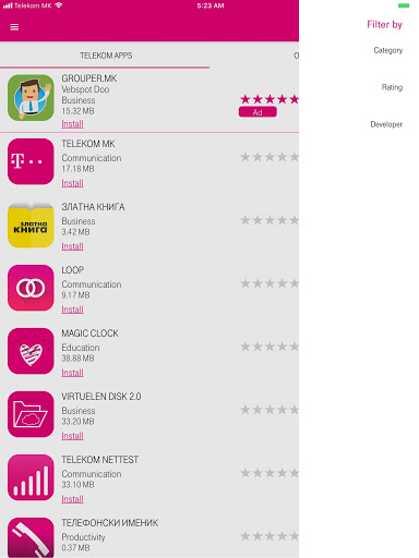 جميع تطبيقات Telekom في مكان واحد.مع سوق Telekom، يمكنك تصفح جميع تطبيقاتنا واكتشف أحدث تطبيقات Telekom، وكذلك تطبيقات شركائنا.في الوقت نفسه، ستبقى جيدا، بفضل المعاينات التفصيلية والاختبارات الدقيقة لجميع التطبيقات.قم بتنزيل سوق Telekom واحصل على إشعارات لجميع أحدث تطبيقات Telekom!