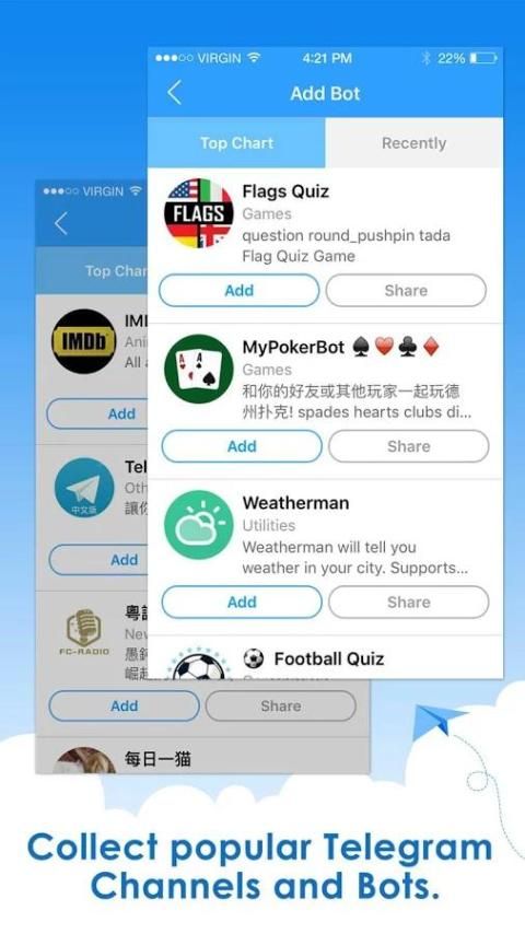 جمع برقية قائمة القنوات الأكثر شعبية من جميع أنحاء العالم. يمكنك الانضمام إليها من خلال ضغطة واحدة.