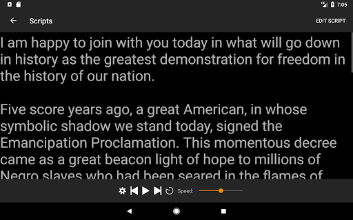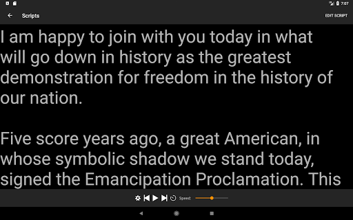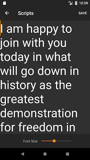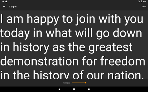 We can easily become your new most used teleprompter, mostly because of the simplicity, features and convenient functionality. Execute your presentation, speech, singing or presentation perfectly knowing you have a great teleprompter tool on your Android device.