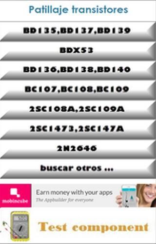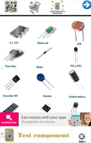 اختبار المكونات هو أحد التطبيقات التي يمكن الاستعلام جوانب مختلفة من المكونات الإلكترونية المختلفة مثل ورقة البيانات، وأشرطة الفيديو يوتيوب، Wilkipedia، طريقة الاختبار، والوصف، والاستقطاب، والرسوم البيانية التجمع، والقراءة مصلحة الارصاد الجوية، الترانزستور pinout الخ