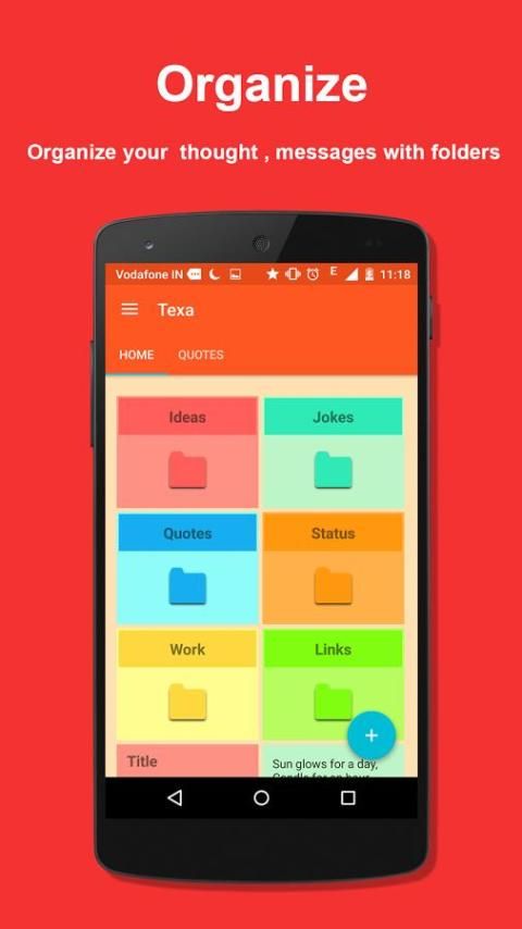 Some India application are update now! 20,000+ users downloaded Texa : Quick Text Saver latest version on 9Apps for free every week! It is the app that defined the best for a generation. This hot app was released on 2015-11-22. You can free download it from 9Apps.
