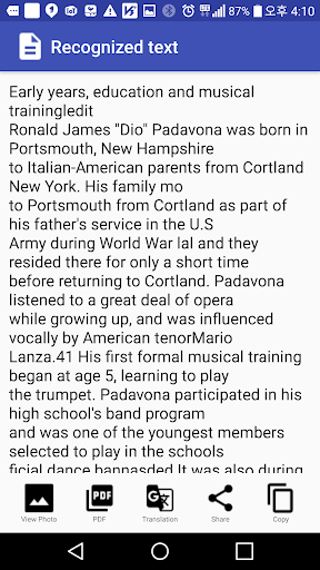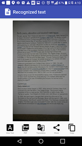 ● يمكنك نسخ النص الذي تم التعرف عليه إلى الحافظة واستخدامه في تطبيقات أخرى.