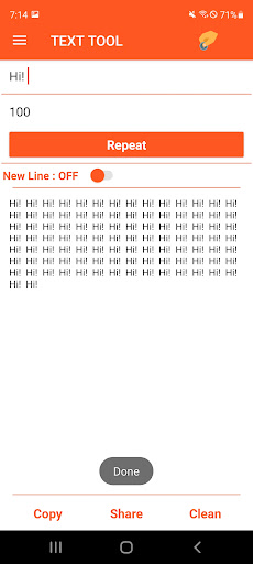 احصل على مكرر النص والنص الأنيق والنص المقلوب والكثير من القوس في تطبيق واحد.يمكن أن ينشئ تطبيق مكرر النص كمية غير محدودة من النص المتطابق للرسائل ، وكذلك تحويل نص بسيط إلى نص تم إنشاؤه من الرموز التعبيرية أو استخدام خطوط جميلة في MSG.يوجد في هذا التطبيق العديد من الوظائف الأخرى ، قم بتثبيت التطبيق وجرب كل هذه الميزات!النص بلا حدود عدة مرات