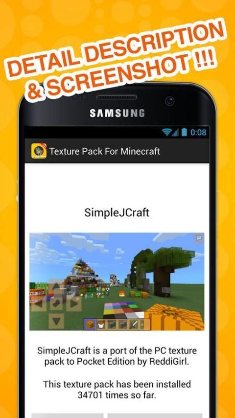 يمكنك تصفح كل حزمة الملمس الذي يعجبك، ثم اضغط تثبيت، كل ذلك. تذكر أنك تحتاج إلى تثبيت BlockLauncher وماين كرافت الطبعة مسؤول جيب لتطبيق هذا الملمس على اللعبة.
