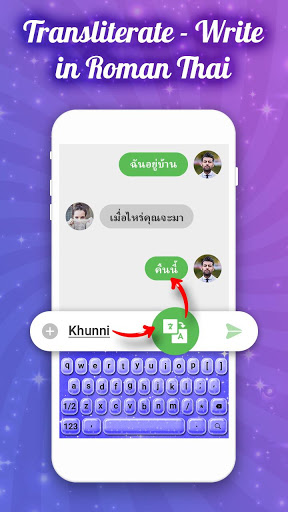 مفيد للتحويل من ميزات الترجمة الإنجليزية إلى التايلاندية ، يساعدك تطبيقنا على تحويل الإنجليزية إلى التايلاندية أثناء التنقل. تجعل تطبيقات لوحة المفاتيح هذه من السهل الكتابة والكتابة باللغات الأجنبية. ما عليك سوى إدخال الكلمات الإنجليزية والسماح للوحة المفاتيح المتحركة بتحويل اللغة الإنجليزية إلى الرومانية التايلاندية.