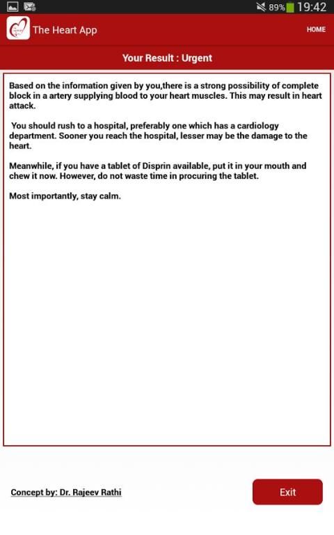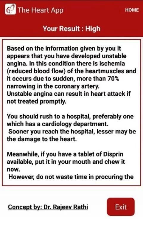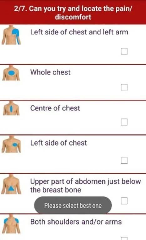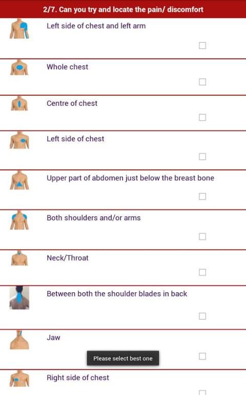 Please note that this app, by no means, intends to replace the clinical judgement of a doctor; rather its main purpose is to educate people, prevent them from ignoring an emergency and enable seeking early treatment.