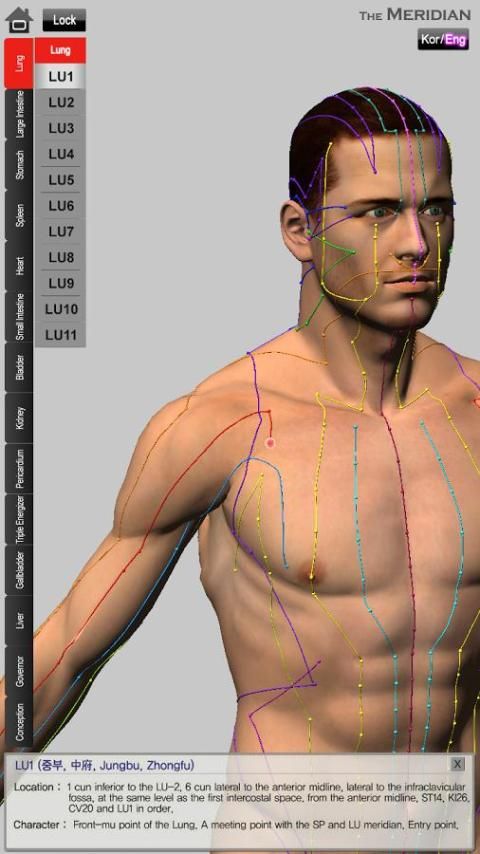 يستخدم ميريديان نموذج 3D جسم الإنسان للطب الشرقي. لأن العديد من الأطباء وأساتذة الطب الشرقي وقد شاركت من خلال التنمية، ويمكن للميريديان نقدم لكم ليس فقط التشريح جميل ولكن أيضا دعما كبيرا لتطبيق الوخز بالإبر وشرح للمرضى الخاص بك.