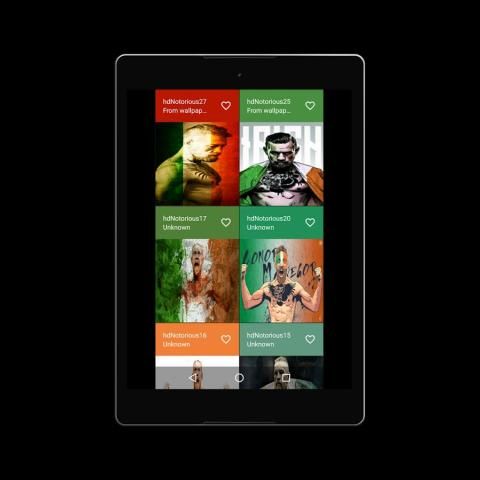 على خلفيات شهير هو تطبيق يحتوي على عدة صور واحدة من أعظم مقاتلي فنون الدفاع عن النفس، أو أعظم من كل الوقت ، ودعا أسطورة حية سيئة السمعة التي يمكنك استخدامها كخلفية الخاص بك، مثل قفل الشاشة من بين الميزات الأخرى. يحتوي هذا التطبيق على العديد من الصور للأسطورة حية، ويجري تطبيق مثالي لأولئك الذين يعتبرون أنفسهم من محبي Notarious الحقيقية.