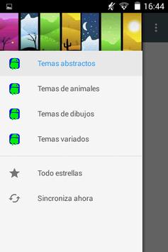 في تطبيق يمكننا تحديد في المواضيع الشريط الجانبي الأيسر تريد ومن ثم الوصول إلى كل واحد منهم حتى تتمكن من تحميلها. انها حرة تماما وتعمل كل المواضيع، وإعطاء لمسة من التخصيص فريدة من نوعها لالروبوت الهاتف المحمول الخاص بك.
