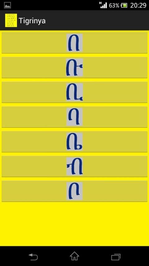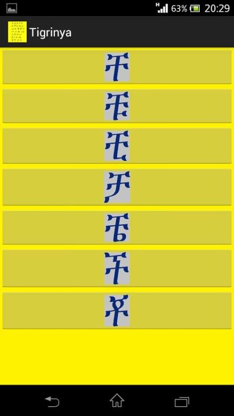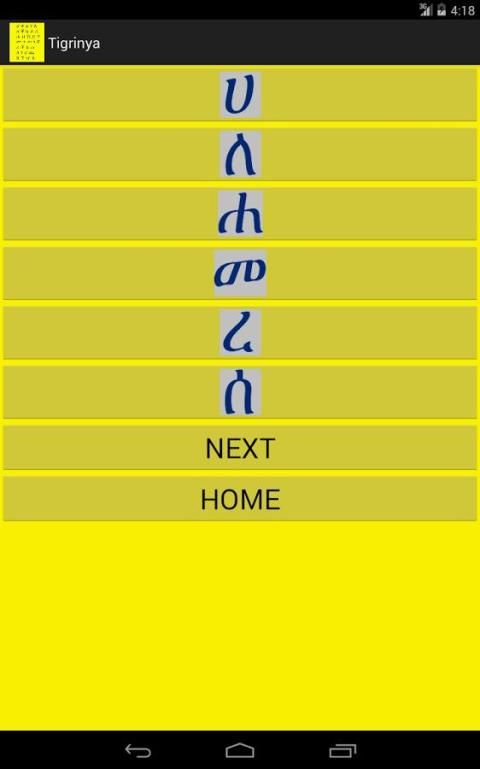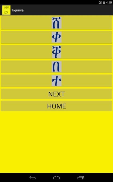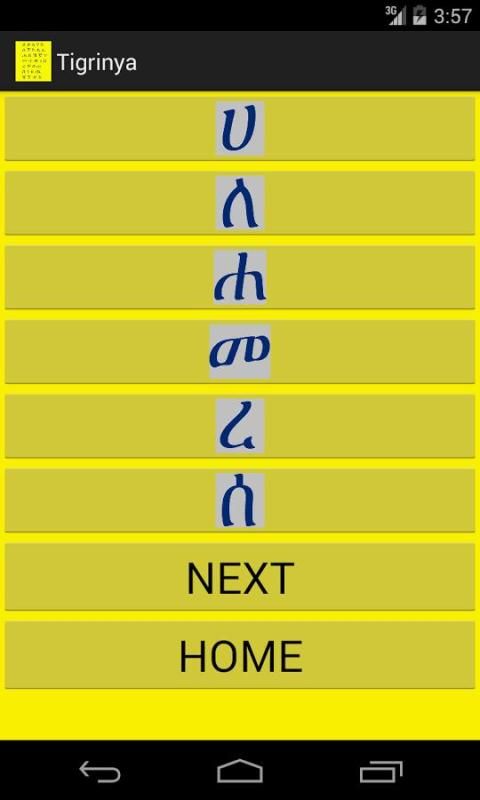 FREE APP!! Tested in 7 inch Table too!!!! It is an app that shows you the Tigrinya alphabets and tells you the pronunciation of the alphabets. It's great for anyone who wants to learn an exotic Language. Especially for people from Tigrinya speaking families who have sons and/or daughters and want to teach them the alphabets. It's easy to use and it's always at your fingertips, by clicking a button you can view the alphabets and hear their pronunciation.