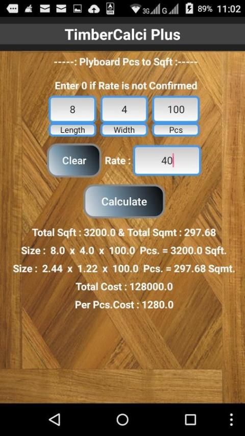 > ويحسب حسابات PlyBoard أيضا مثل قطع لقدم مربع وقطع. لSqmt.