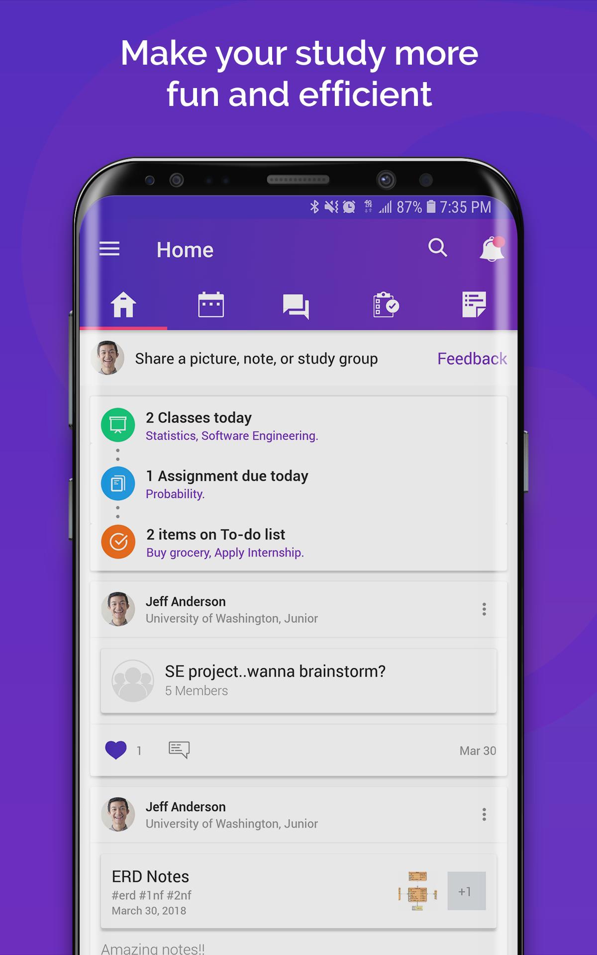 - Create notes with text or photos, attach them to your classes or find them easily in your history.