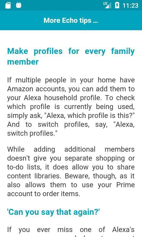 من هذا التطبيق، سوف تحصل على نصائح مختلفة اليكسا، الأوامر والنصائح والحيل صدى. هذا التطبيق لديه اثنين من فئة. واحد هو النصائح والحيل مجال آخر غير اليكسا أوامر الأغنية، حيث يمكنك معرفة مختلف أوامر اليكسا.