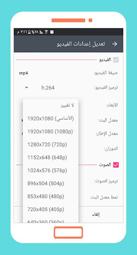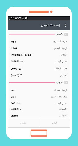 - يعطيك امكانية تغيير اعدادات الفيديو من حيث الأبعاد ومعدل نقل البيانات والجودة والدوارن وغيرها.