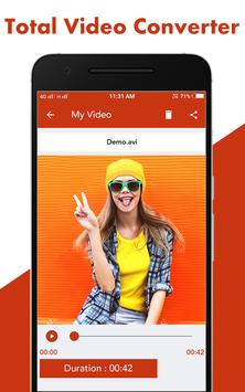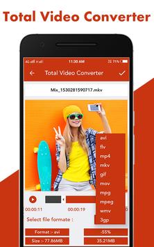 Total Video Converter هو أفضل تطبيق محول من نموذج إلى أشكال أخرى مختلفة ..... باستخدام هذا التطبيق يمكننا تحويل مقاطع الفيديو الخاصة بنا بتنسيقات مختلفة بسهولة ....... تلك التنسيقات هي .mp4 ، .3gp ، .mkv ، .avi ، .flv ، .mov ...