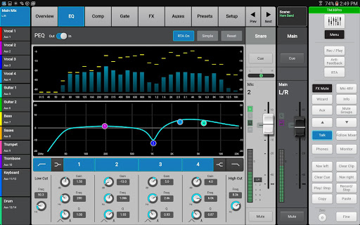 عند تشغيلها على جهاز الكمبيوتر اللوحي، يتبع تطبيق التحكم TouchMix عن كثب النموذج التشغيلي للخلاط. يعمل الجهاز اللوحي و Mixer واجهة المستخدم الرسومية بشكل مستقل حتى يكون من الممكن أن يعمل الجهاز اللوحي كواجهة مستخدم إضافية يمكنها عرض وتحكم مجموعة من الوظائف تختلف تماما عن تلك التي يتم التحكم فيها بواسطة شاشة الخلاط والأجهزة. وضع التشغيل البدائي - متابعة الخلاط - متاح أيضا. مع متابعة Mixer تشارك، يتبع الجهاز اللوحي اختيار Fader على الخلاط. المس فادر على الخلاط وسيعرض الجهاز اللوحي نظرة عامة على القناة أو EQ أو الضاغط أو إرسالها أو شاشة البوابة. المس معلمة على الجهاز اللوحي والتحكم الدوار للخلاط سيتم ضبطه - أو مجرد سحب على شاشة الجهاز اللوحي. عند استخدامها دون لوحة Touchmix الفعلية، يعمل التطبيق كإظهار لخلاط GUI والوظائف ولكنه لا يتحكم في الصوت بأي شكل من الأشكال.