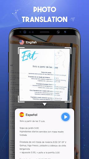 ● مع قوة تكنولوجيا التعرف الضوئي على الحروف، الترجمة مريحة. يمكنك ترجمة من صورة للقائمة، أو صورة لعلامة الطريق. سيتم ترجمة النص في صورتك على الفور.