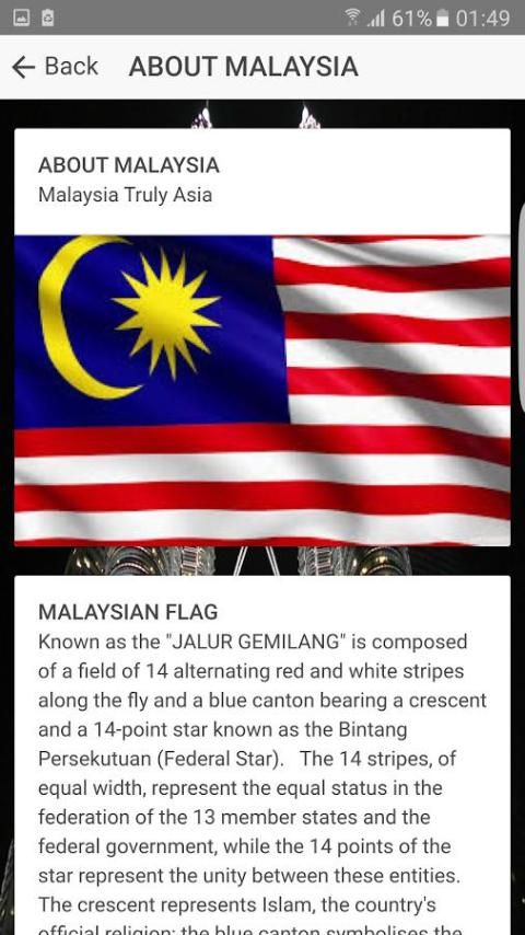 السفر ماليزيا هو مجاني لتحميل ويعمل حاليا. السفر ماليزيا يحتوي على معلومات عن الوجهة السياحية الأكثر مذهلة في ماليزيا وفي العالم. هذا التطبيق يظهر لك معظم الحقائق التي تحتاج إلى معرفته حول ومعظم الصور المذهلة. تعرف على الأماكن يجب زيارة في ماليزيا، والغذاء الشعبية المحلية في محاولة، خيارات حجز الفنادق ومعلومات الطقس، الأخبار الماليزية والكلمات المحلية.