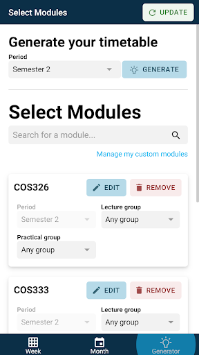 Using the latest information available on the university website, the app creates all the possible combinations of your timetable, and shows you the ones with the least clashes first.
