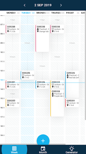 The weekly timetable automatically clears your lectures, practicals and tutorials on public holidays and during exam times and recess. It also detects timetable changes (Monday follows Friday timetable) and performs those changes without you having to worry.