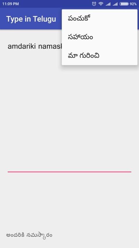 نوع في التيلجو هو أداة حيوية الذكية التي تقدم لك اكتب سهل وسريع في التيلجو (తెలుగు) على هاتفك النقال.
