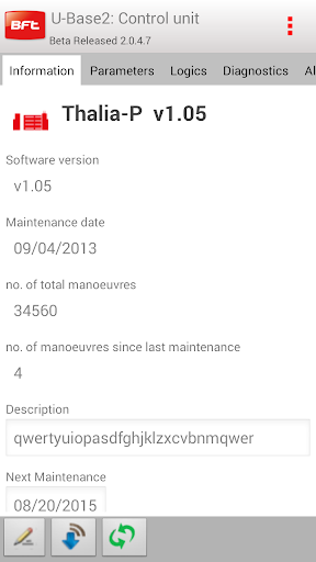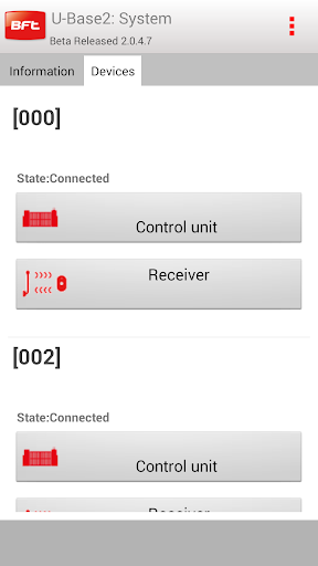 BFT U-Link Central وبرامج البرمجة.للتشغيل ، يتطلب تثبيت بطاقة التوسع B EBA بوابة متصلة بوحدة التحكم.تم تصميمه على احتياجات المثبت للإدارة المبسطة وصيانة أنظمتها ، ويتميز بواجهة المستخدم البديهية والفورية.يسمح لك بالاتصال عن طريق تحديث البيانات مباشرة على الأنظمة المتصلة أو خارج الخط عن طريق التشغيل على المعلومات الموجودة في قاعدة بيانات الكمبيوتر المحلية أو الجهاز المحمول الذي تم تثبيته عليه. (التوافق U-Link).من الممكن عرض المعلمات ومنطقها ، وكذلك عرض قائمة الإنذارات المسجلة.