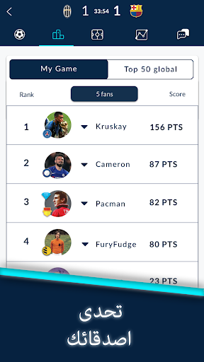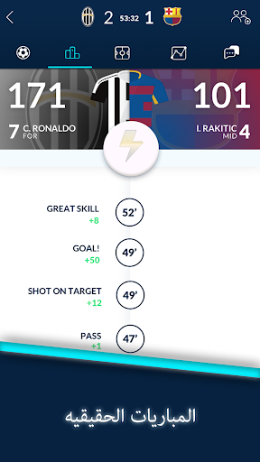 اتبع المباراه لمراقبه نقاطك . نتيجتك سترتفع لكل فعل يقوم به لاعبك فالمباراة - تمريره ، تدخل ، والكثير