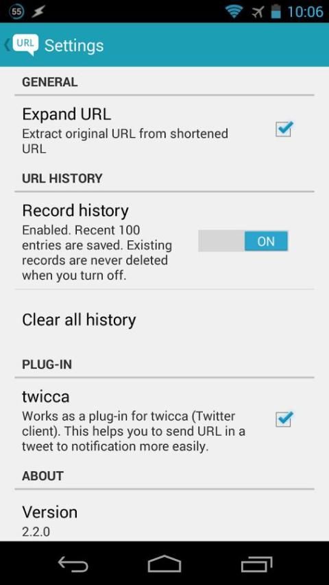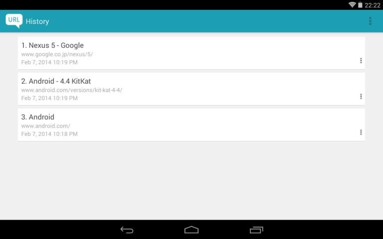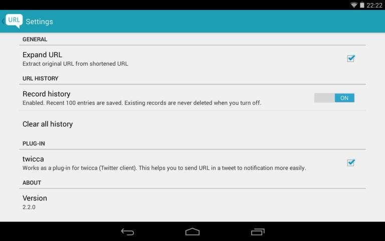 هذا التطبيق يمكن أن تسجل أرسلت URL إلى لوحة الإخطار. يتم حفظ 100 إدخالات الأخيرة. لاستخدامها، تحتاج لتفعيل هذه الدالة من الإعدادات.