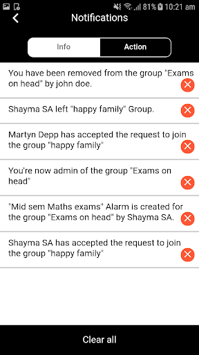 b. Group : Recurring or ad-hoc alarm can be set. Alarm management privileges vary based on group type. This is a great productivity tool for groups with respective to remind , notify group of people. This eliminates individual member in the group to self manage group related activity.