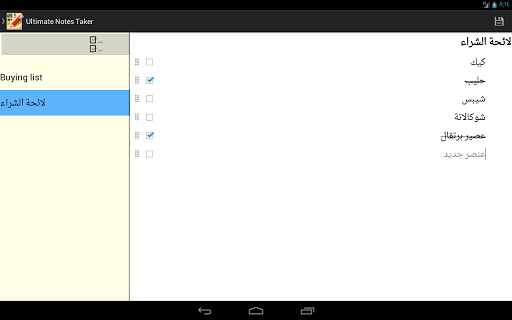 - تم إضافة مذكرة اللائحة التي من خلالها يمكنك أخذ ملاحظات بشكل لائحة وشطب كل ما قد تم إنجازه من اللائحة